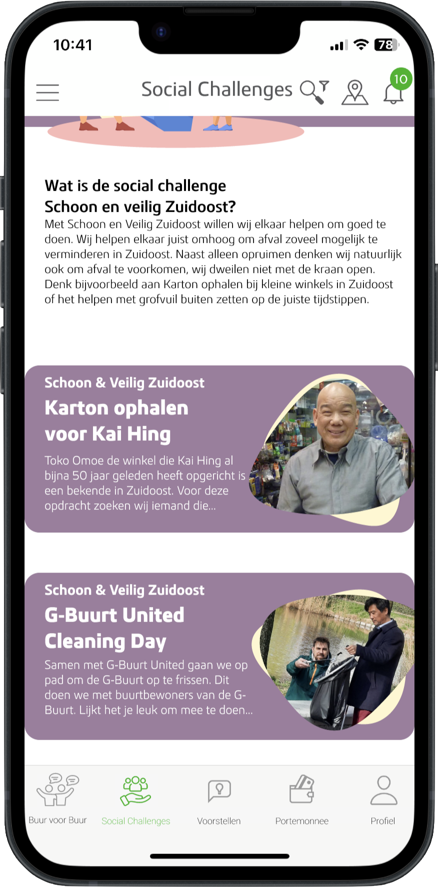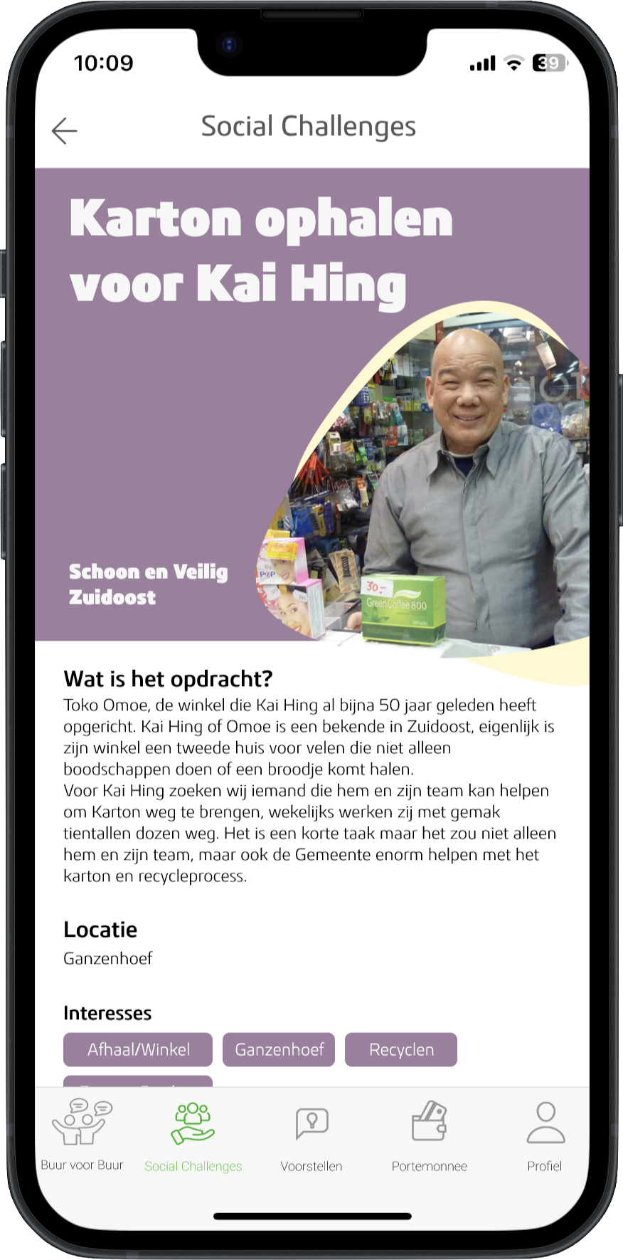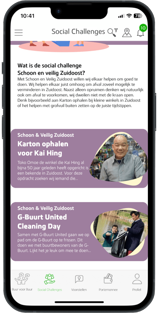 Specific volunteering tasks are categorised in societal topics. These tasks are offered by social initiatives and foundations through 2Ping. By focusing on Social Challenges, 2Ping aims on creating social impact with other residents and volunteers. Residents are able to contribute to a particular community of shared interests, e.g. energy transition, safety in South-East, sustainable food chain.