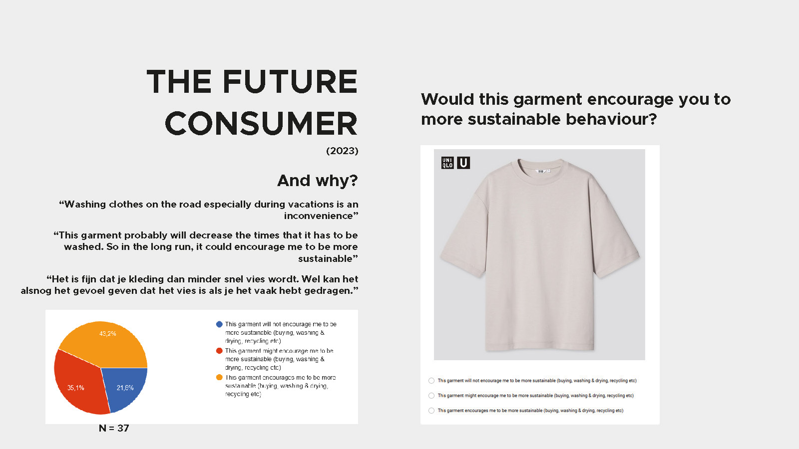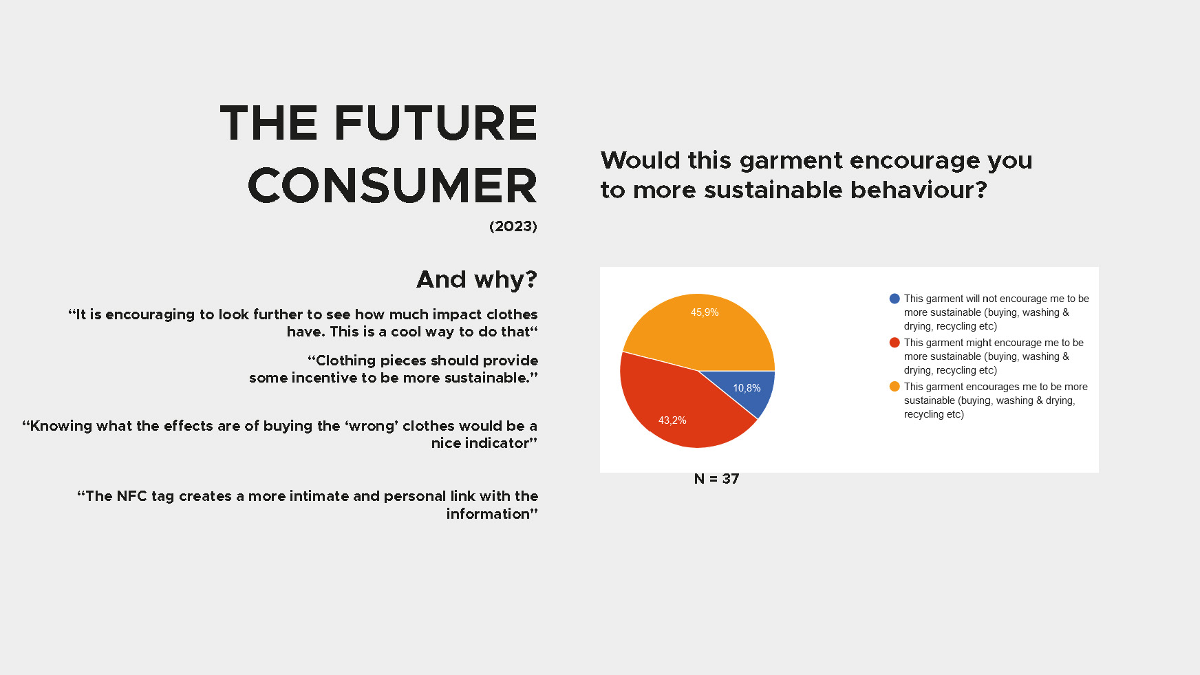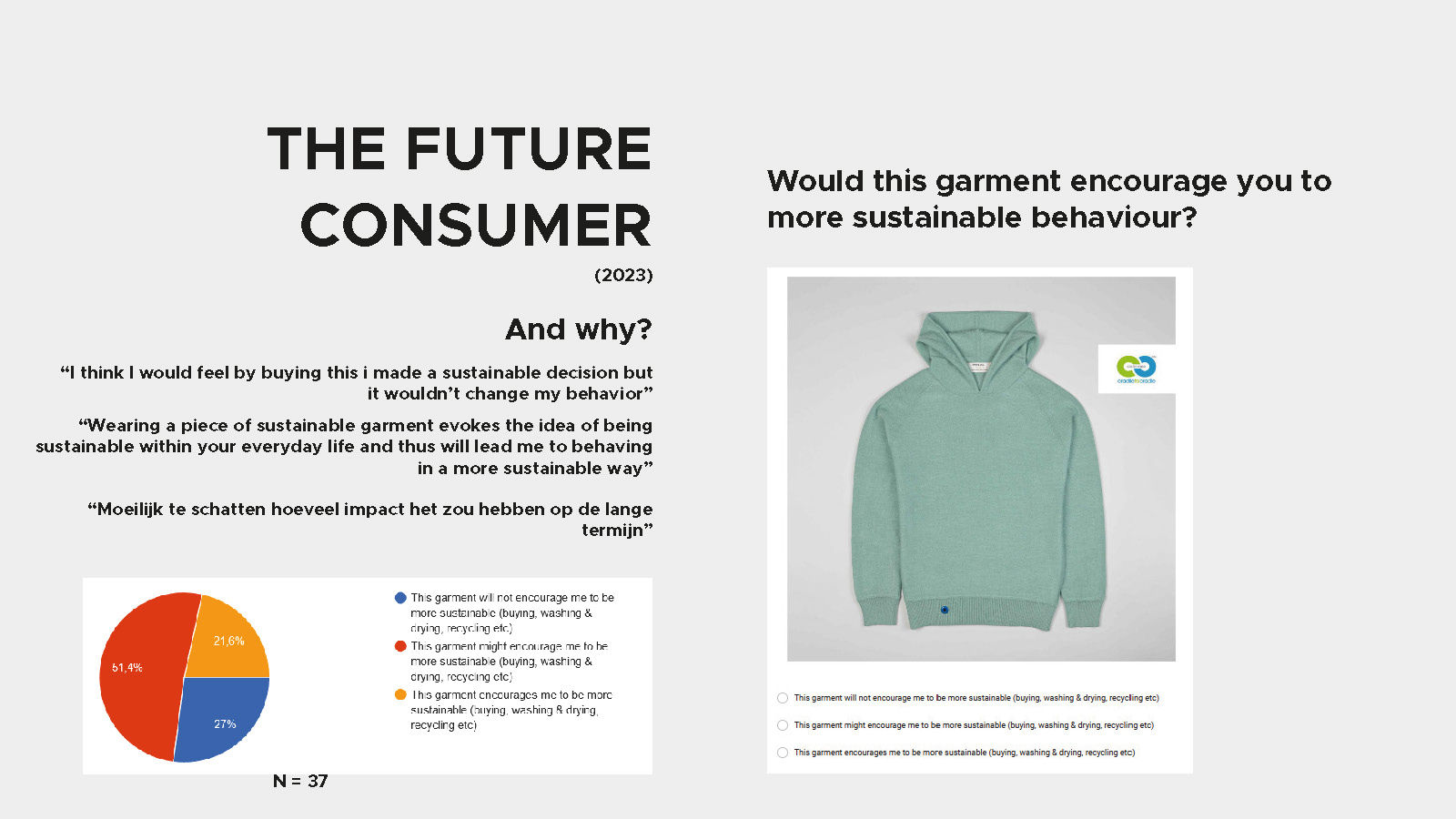 Through quantitative research, I tested design cues and triggers on sustainable behaviour among existing products in the market. I asked participants why a garment with specific characteristics (materials, branding, processes, transparency) could or could not encourage more sustainable behaviour.